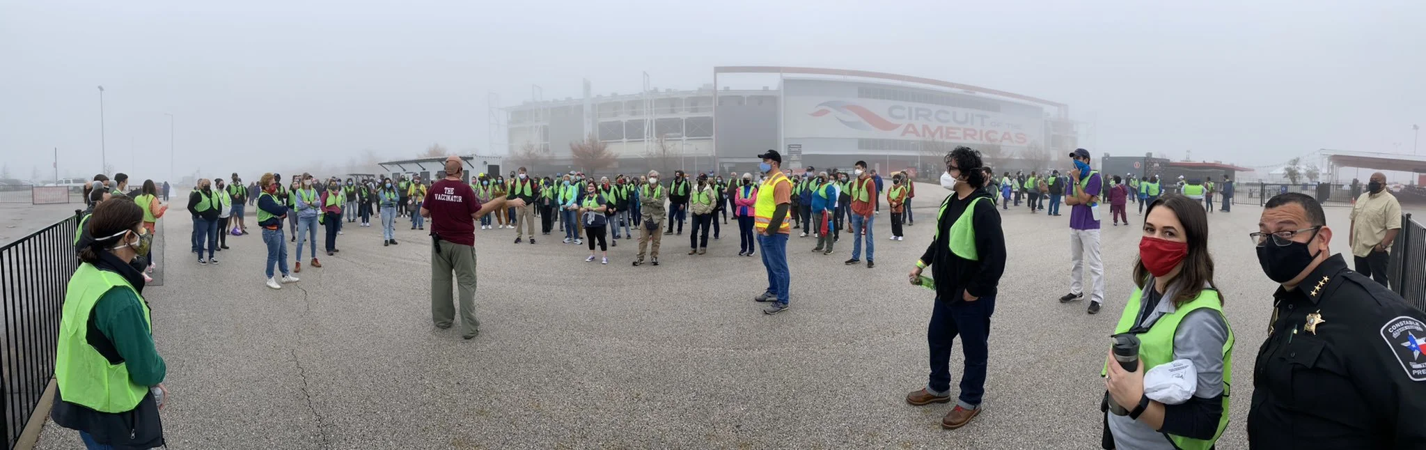 In response, Travis County partnered with local entities including neighboring counties, Ascension Seton, and CommUnityCare to establish a free, large scale drive-through vaccination clinic at the Circuit of the Americas.